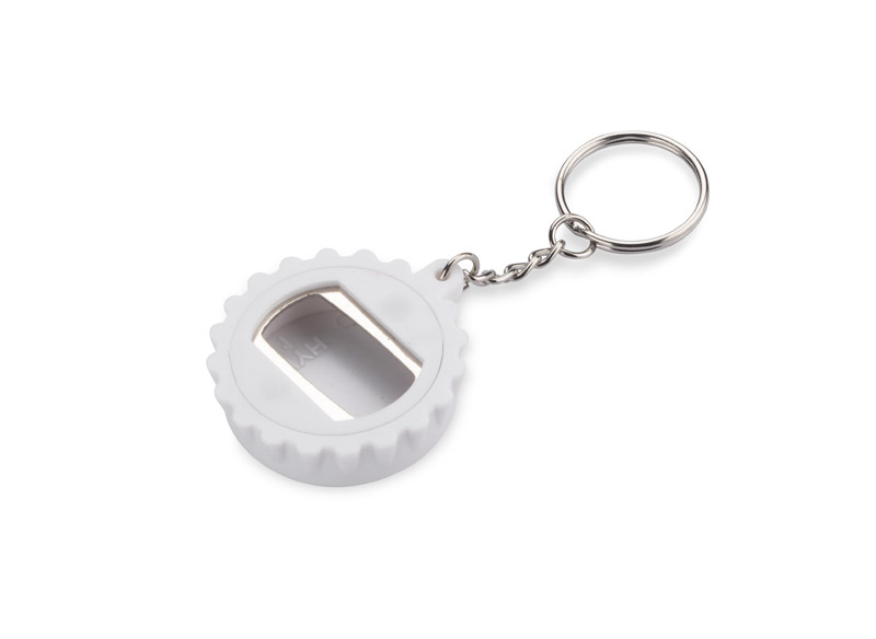 Brelok KAPSI w kształcie kapsla. Pełniący funkcję otwieracza brelok to praktyczny i stylowy dodatek, który zapewnia łatwe otwieranie butelek w dowolnym miejscu.