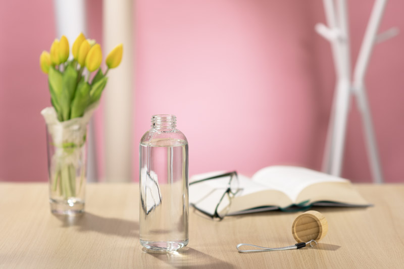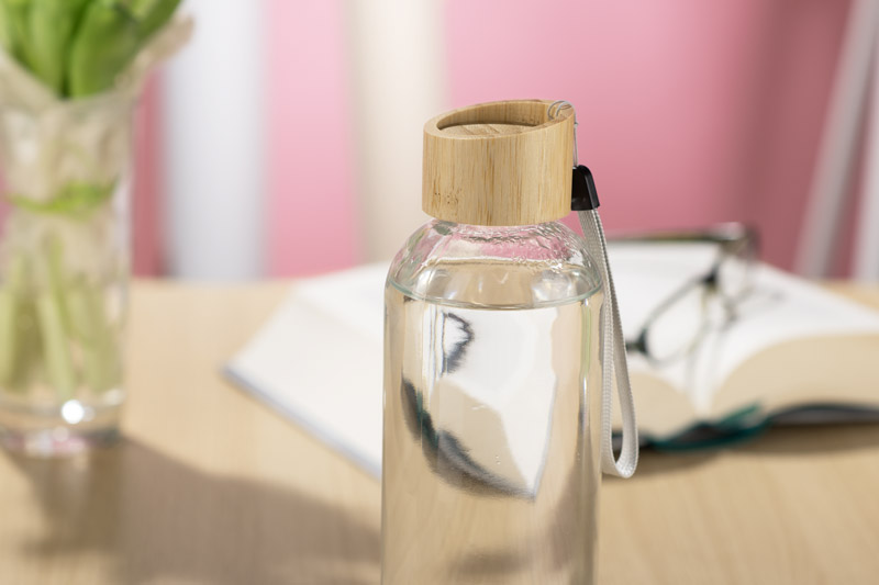 Butelka szklana VITRO o pojemności 650 ml wykonana jest ze szkła borokrzemowego, które charakteryzuje się wysoką odpornością na zmiany temperatury. Zakrętka z naturalnego bambusa ma oryginalny, ścięty kształt, co nadaje butelce nowoczesny wygląd. Dołączona smycz ułatwia przenoszenie i użytkowanie na co dzień. Możliwość znakowania sprawia, że VITRO to atrakcyjna butelka reklamowa.