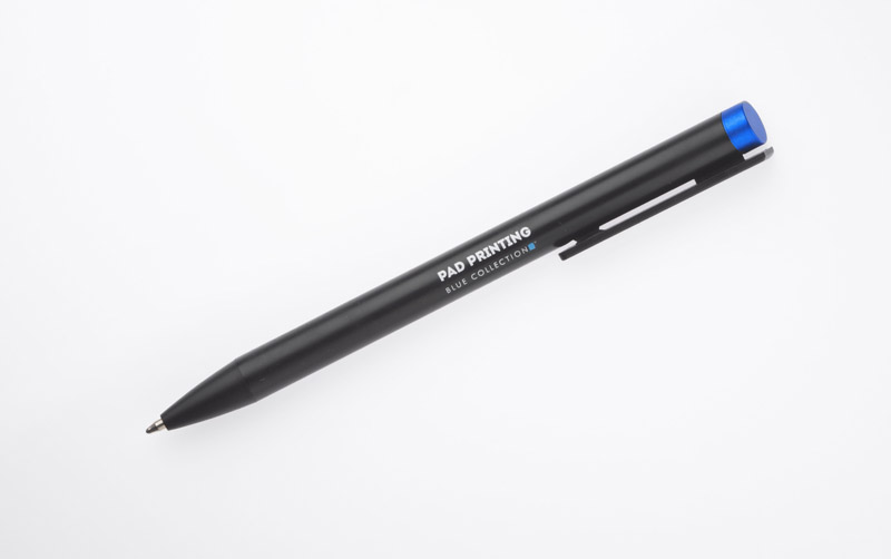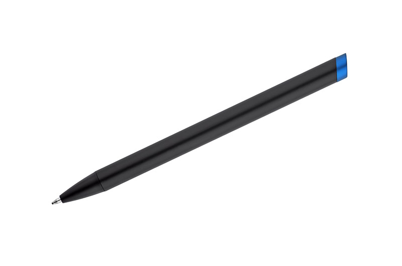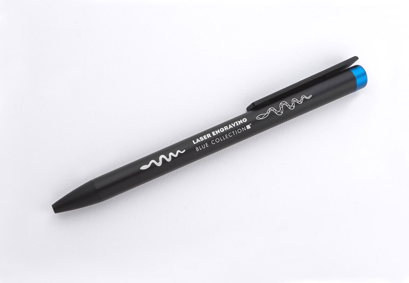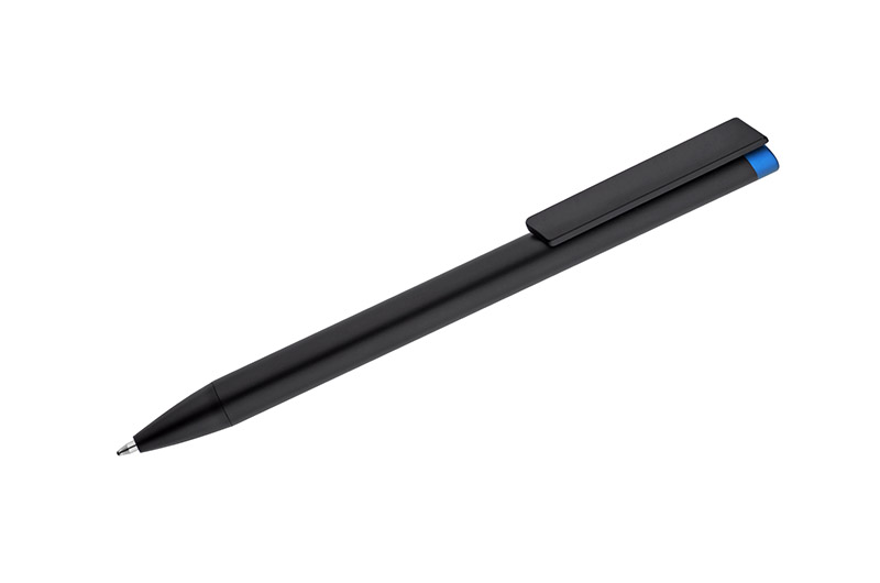 ALI to wyjątkowy długopis umożliwiający wykonanie znakowania w kolorze zbliżonym do końcówki długopisu oraz całkowicie zaskakującego grawerowania w dwóch kolorach – w kolorze zbliżonym do końcówki długopisu oraz białym (kolor aluminium). Czarny metalowy korpus oraz czarne wykończenia stanowią idealne tło dla kolorowego grawerowania. Długopis automatyczny. Wkład typu X20 o grubości 1.0 mm w kolorze niebieskim.