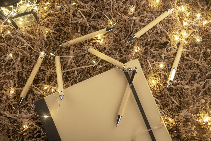 BUSU to długopis wykonany z wytrzymałego i lekkiego bambusa, który nadaje gadżetowi naturalnego uroku i ciepła. Posiada elegancki metalowy klip. Długopis BUSU to więcej niż tylko długopis – to połączenie funkcjonalności z naturalnym pięknem bambusa, które sprawia, że każde pisanie staje się wyjątkowym doświadczeniem.Idealnie komponuje się z ołówkiem automatycznym BANO, tworząc stylowy zestaw piśmienniczy.