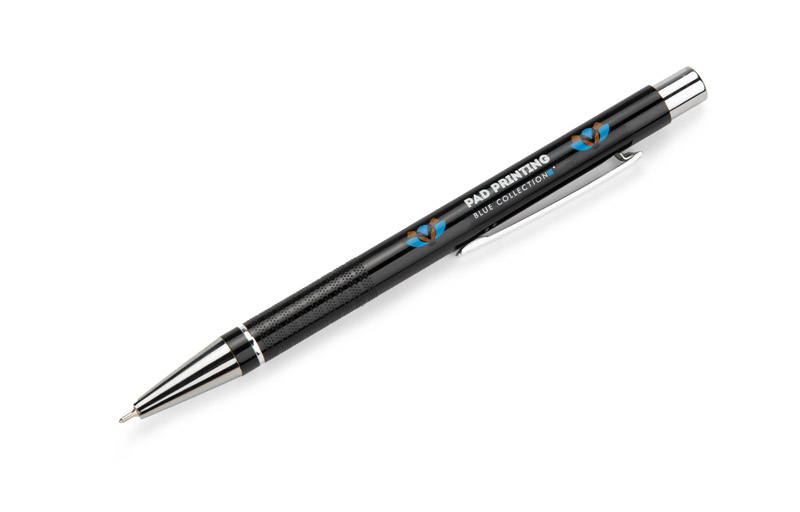 Długopis BONITO to elegancki metalowy długopis w metalicznych kolorach z chromowanymi wykończeniami. Wykonany z wysokiej jakości aluminium, korpus długopisu ozdobiony jest srebrnym ringiem oraz paskami o delikatnie chropowatej strukturze. Długopis wyposażony jest w wkład z tuszem półżelowym w kolorze czarnym o grubości 0,7 mm.