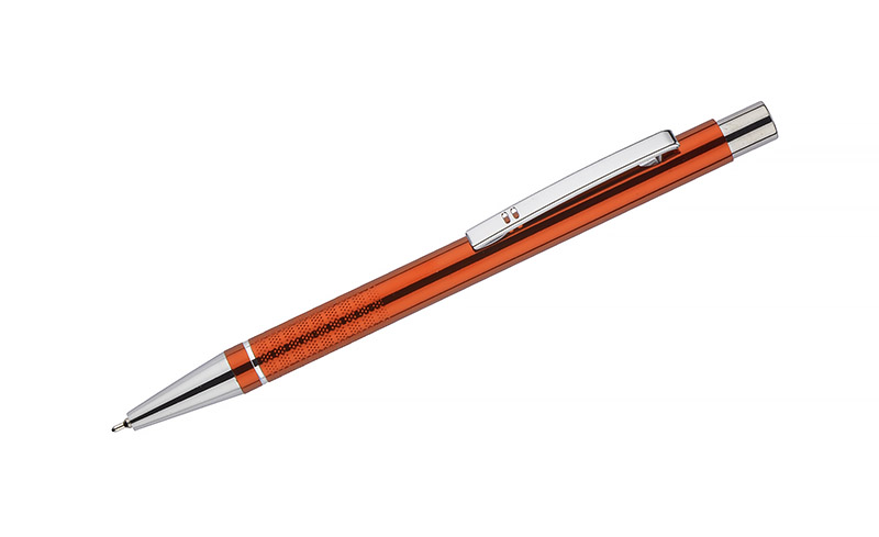 Długopis BONITO to elegancki metalowy długopis w metalicznych kolorach z chromowanymi wykończeniami. Wykonany z wysokiej jakości aluminium, korpus długopisu ozdobiony jest srebrnym ringiem oraz paskami o delikatnie chropowatej strukturze. Długopis wyposażony jest w wkład z tuszem półżelowym w kolorze czarnym o grubości 0,7 mm.