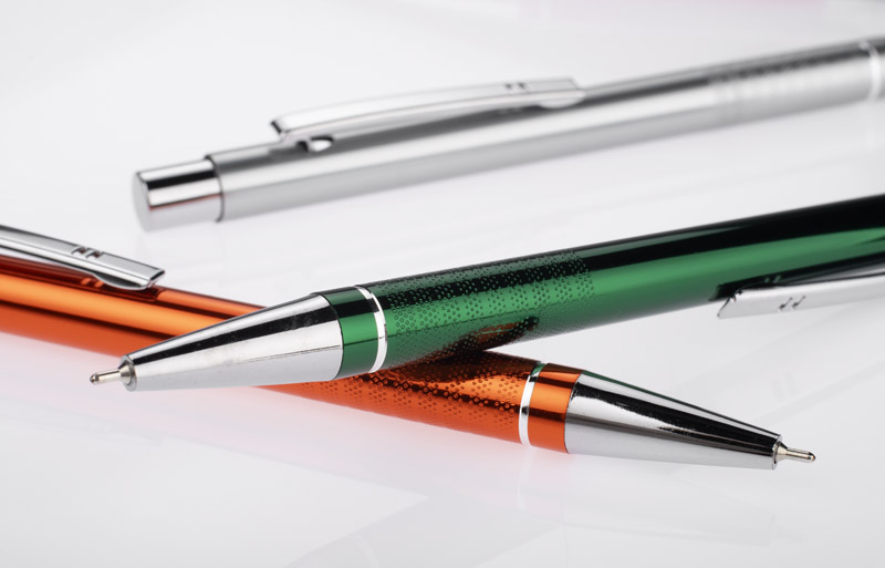 Długopis BONITO to elegancki metalowy długopis w metalicznych kolorach z chromowanymi wykończeniami. Wykonany z wysokiej jakości aluminium, korpus długopisu ozdobiony jest srebrnym ringiem oraz paskami o delikatnie chropowatej strukturze. Długopis wyposażony jest w wkład z tuszem półżelowym w kolorze czarnym o grubości 0,7 mm.
