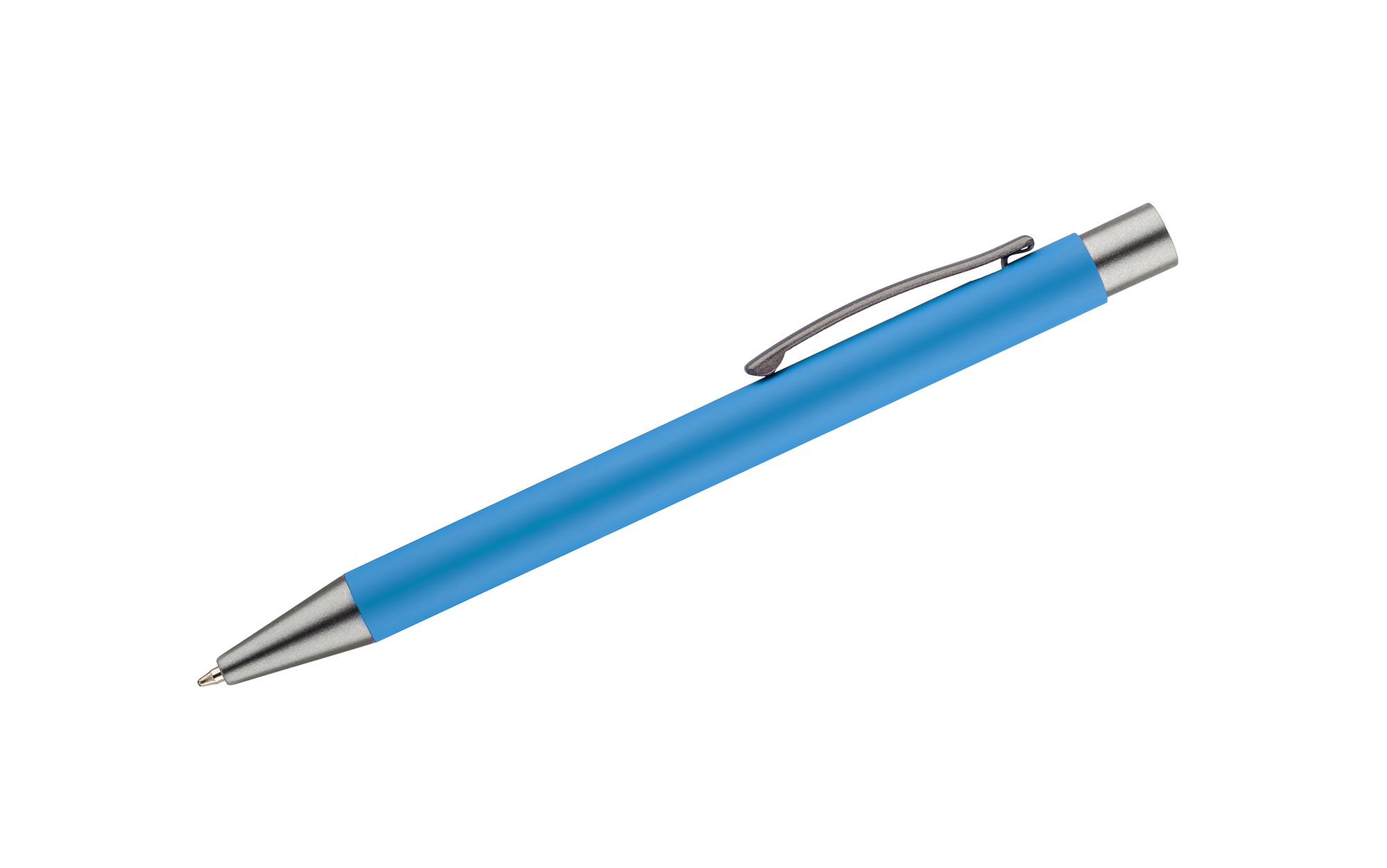 Długopis GOMA to prosty design połączony z przyjemna w dotyku gumowana powierzchnią. Całość jest utrzymana w lekkich, matowych barwach. Wykonany z aluminium. Wykończenia w kolorze grafitowym. Wkład w kolorze niebieskim.