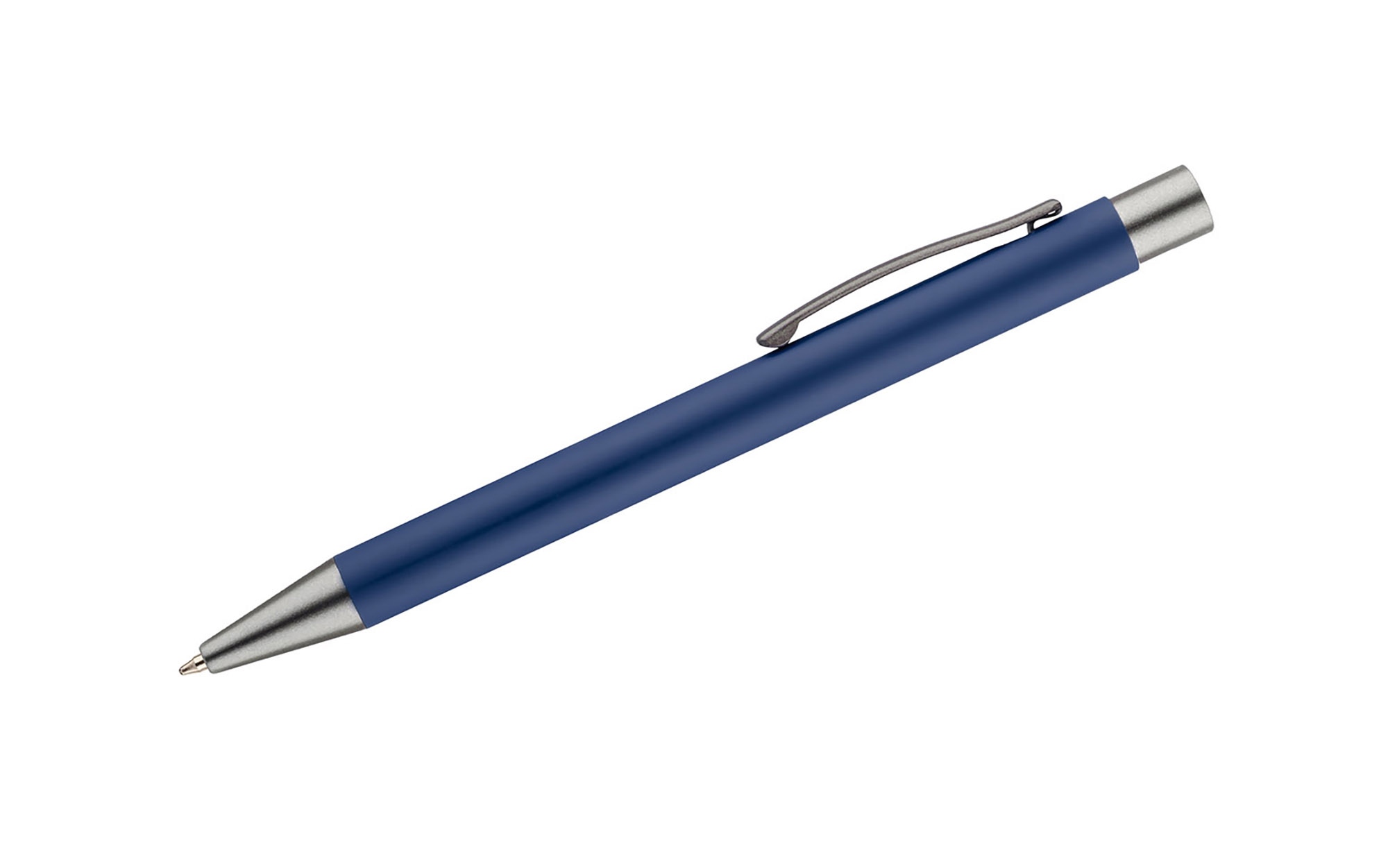 Długopis GOMA to prosty design połączony z przyjemną w dotyku gumowaną powierzchnią. Całość jest utrzymana w lekkich, matowych barwach. Wykonany z aluminium. Wykończenia w kolorze grafitowym. Wkład w kolorze czarnym.