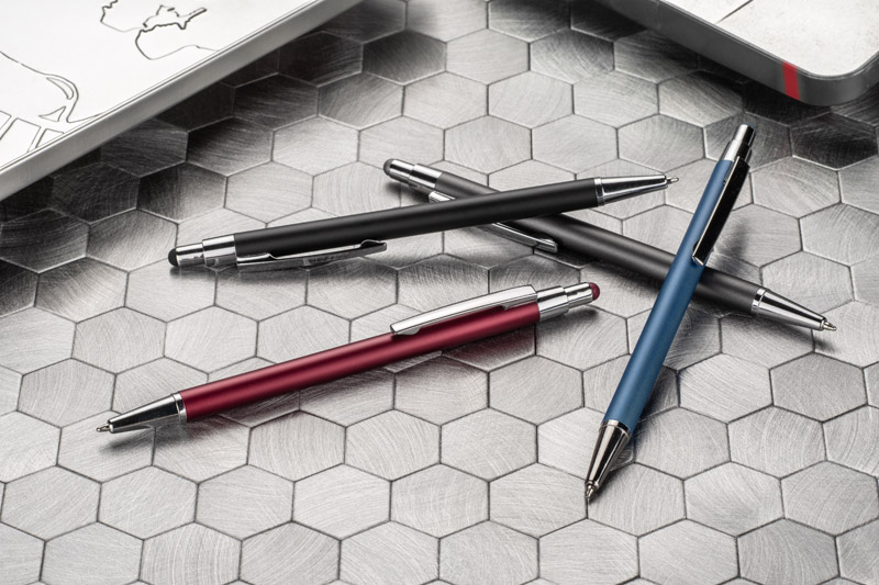 DAWEI to klasyczny cienki długopis wykonany z metalu w stonowanych kolorach dla miłośników ponadczasowego uniwersalnego wzornictwa. Na górze końcówka typu touch do obsługi ekranów dotykowych w kolorze dopasowanym do koloru korpusu. Długopis automatyczny. Wkład typu X20 o grubości 1.0 mm w kolorze niebieskim.