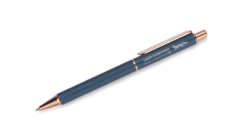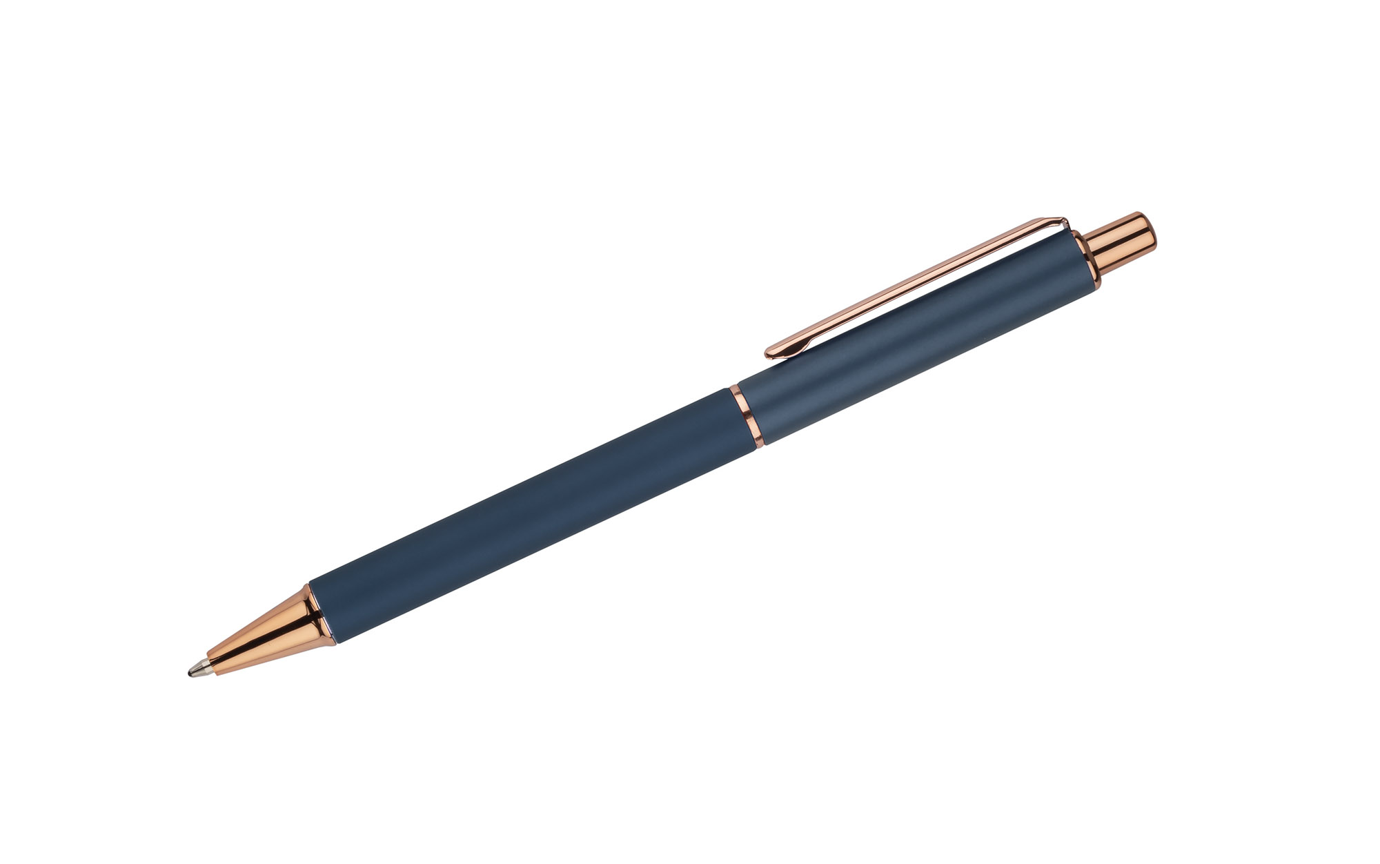 Matowy długopis z akcentami w kolorze różowego złota. Korpus oraz klips wykonane z metalu