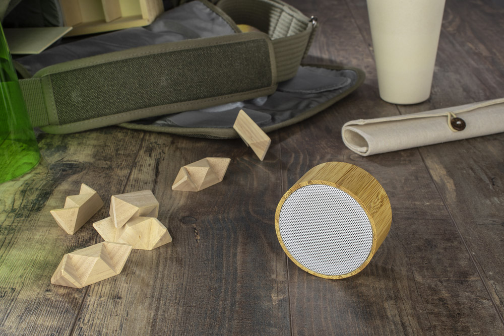 TROPIC to mały i elegancki głośnik wykończony naturalnym bambusem. Posiada on możliwość użycia w charakterze zestawu głośnomówiącego. Odtwarzanie muzyki za pośrednictwem bluetooth (wersja 5.0) lub karty micro SD. Produkt jest zgodny z odpowiednimi dyrektywami Unii Europejskiej oraz posiada znak CE. Dane techniczne: moc wyjściowa: 3W x 1, napięcie: 5V Stosunek S/N: ≥ 65 dB, czas pracy: 2-3 godziny, czas ładowania: 2 godziny, pojemność baterii 300 mAh.
