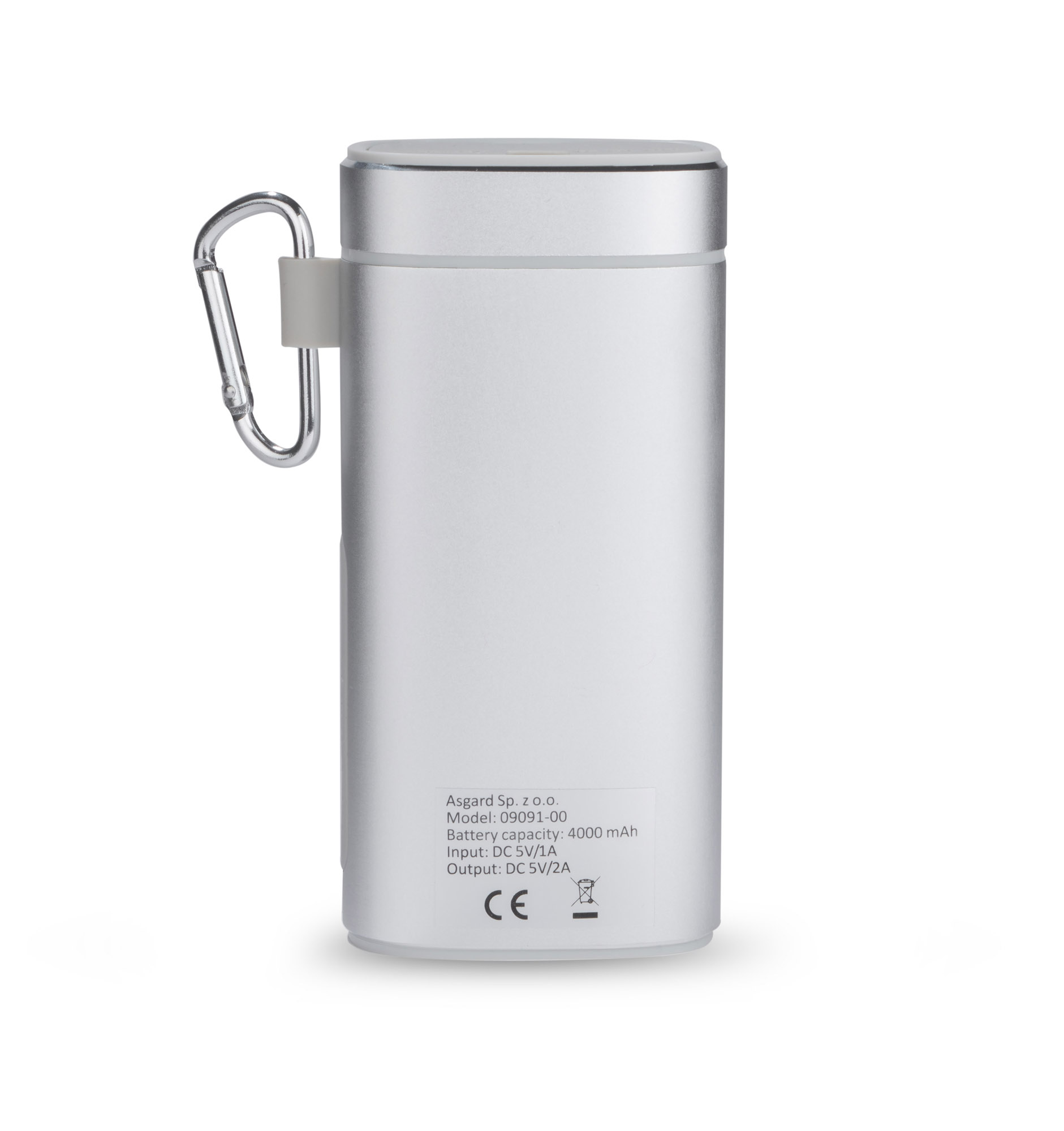 Elegancki głośnik bezprzewodowy z power bankiem o pojemności 4000 mAh to świetny podarunek dla gadżeciarzy. Wykonany jest z metalu, co sprawia, że jest trwały, a wygrawerowane logo będzie się świetnie prezentować. Możliwość wykorzystania głośnika jako zestawu głośnomówiącego. Odtwarzanie muzyki jest możliwe za pośrednictwem bluetooth (wersja 4.2), kabla audio jack 3,5 mm (niedołączony) lub karty micro SD. Ponadto, posiada klasę wodoszczelności IPX4, czyli całkowitą ochronę przed spryskiwaniem i zachlapaniem wodą z różnych kierunków z natężeniem do 10 litrów na minutę. Świetnie nadaje się do użytku turystycznego i na co dzień np. przy lekkim deszczu. Produkt jest zgodny z odpowiednimi dyrektywami Unii Europejskiej, posiada znak CE oraz 1 rok gwarancji. W zestawie kabel do ładowania z końcówką microUSB i karabińczyk. Dane techniczne: – wejście: 5V/1A, – wyjście: 5V/2A, – bateria litowo-polimerowa, moc wyjściowa: 5W x 1, efekt 3D stereo i podbicie basów, Napięcie: 5V Stosunek S/N: ≥ 80 dB, czas pracy: 10-15 godzin