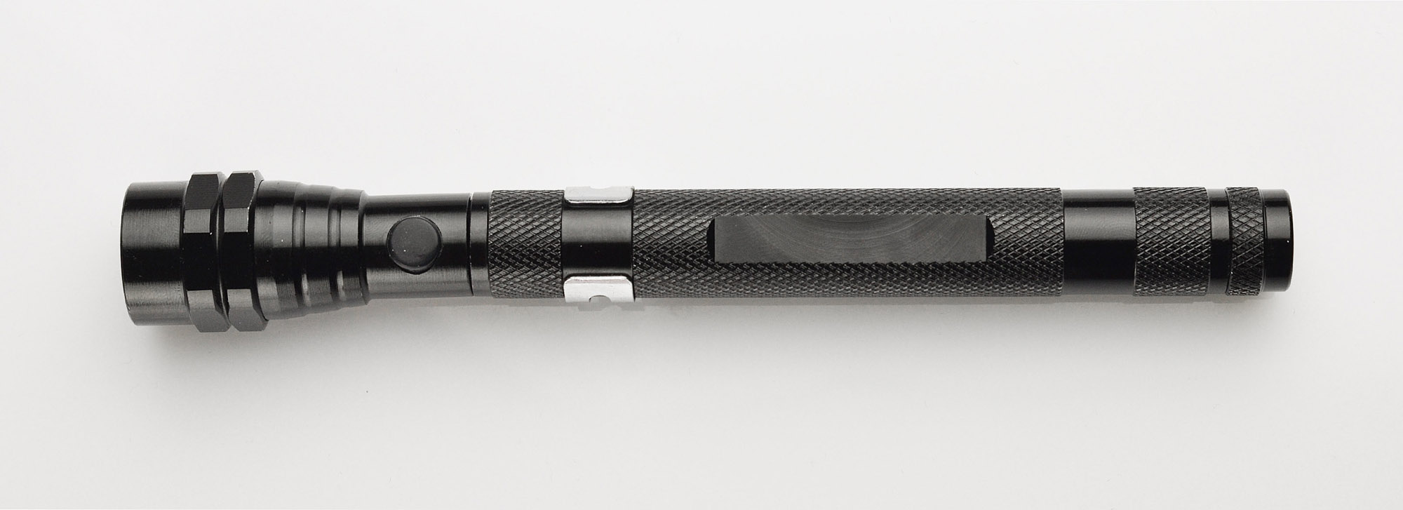 Niesamowity gadżet o licznych zastosowaniach. Wykonana w całości z metalu latarka posiada rozsuwany, teleskopowy korpus oraz ruchomą główkę z 3 diodami LED. Dodatkowym atutem są magnesy umieszczone na obydwu końcach latarki. Konstrukcja jest bardzo solidna i wyposażona w metalowy klip do zawieszenia. Znakowanie możliwie na specjalnie przygotowanej płaskiej powierzchni na rękojeści.