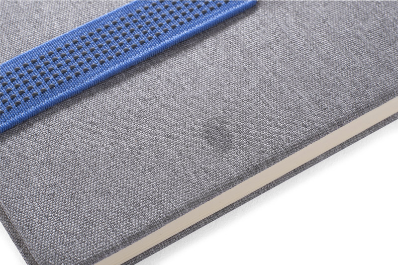 Notes HOLDI posiada bardzo ciekawą okładkę w kolorze szarym, wyglądem przypominającą lniany materiał. Zamykany jest za pomocą kolorowej gumki, która może służyć również jako miejsce na długopisy lub inne niezbędne przedmioty.