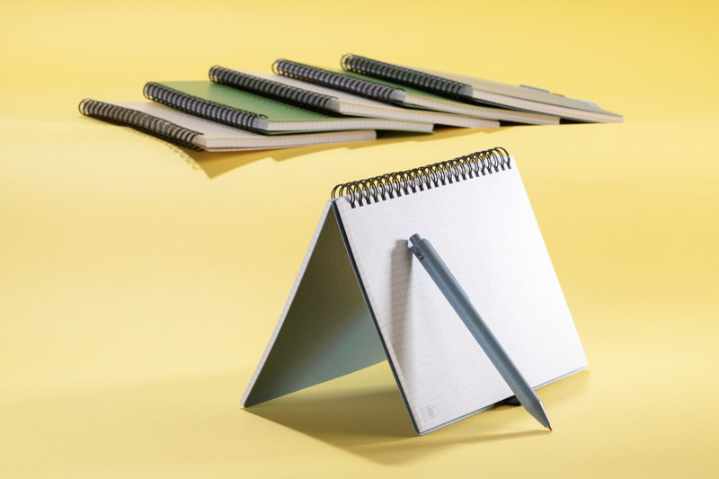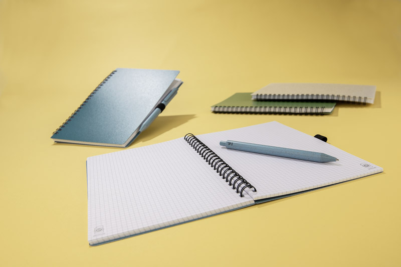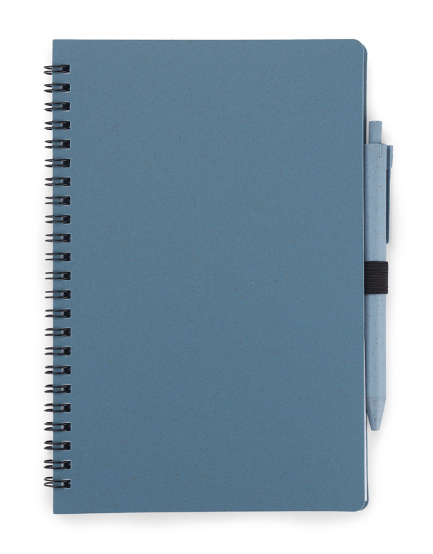 Notes TRESA z długopisem, kolorystyką dopasowanym do okładki. Długopis oraz okładka notesu wykonane są ze słomy pszenicznej. Notes na spirali, posiada 70 kartek w kratkę wykonanych z recyklingowanego papieru. Format A5. Wkład w długopisie w kolorze niebieskim.