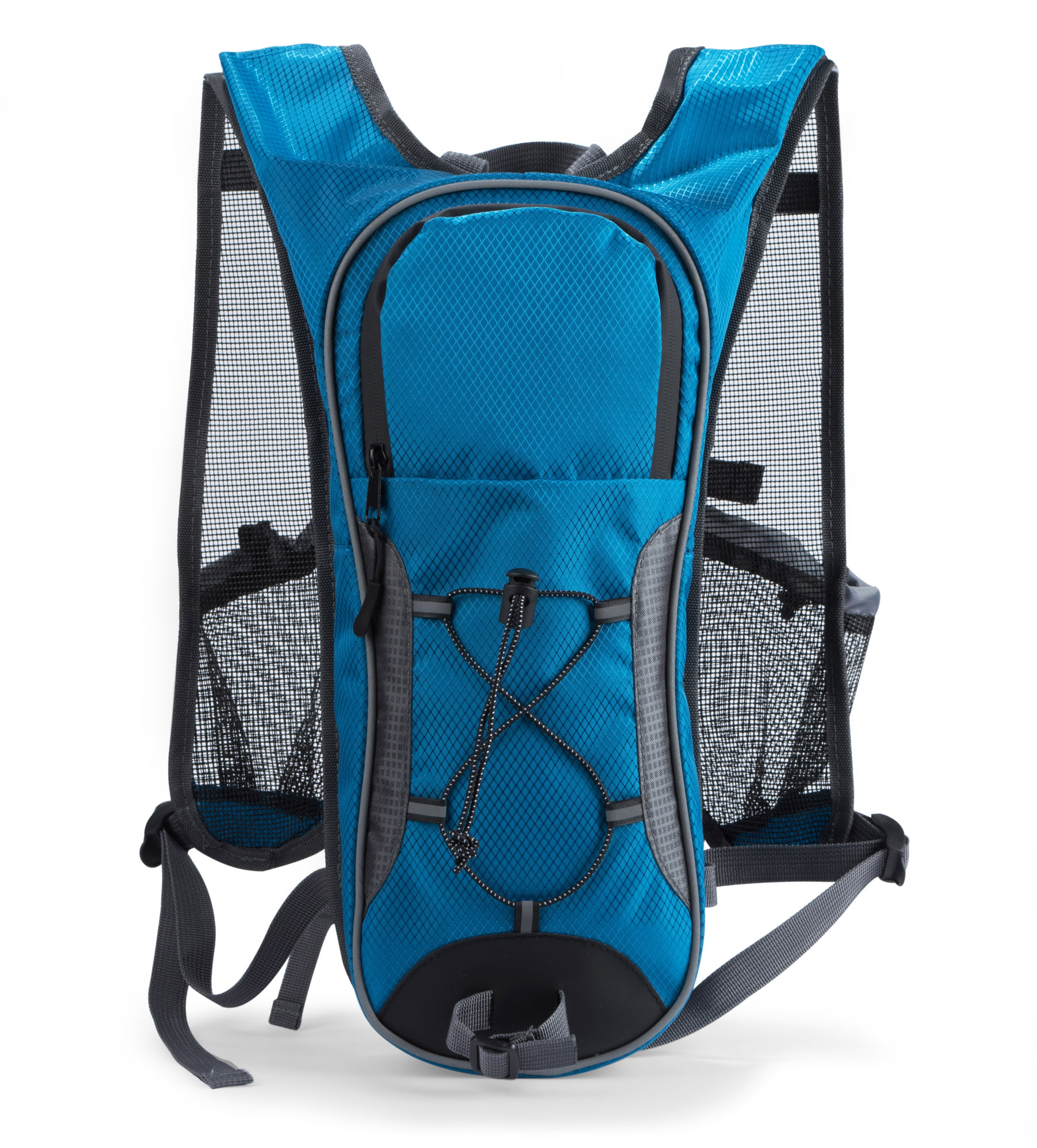 Plecak rowerowy z miejscem na bukłak. Posiada siateczkowe szelki zapewniające przewiewność, wodoodporny zamek oraz gumkę troczącą na ściance frontowej. Dodatkowo, plecak wyposażony jest w dwa pasy piersiowe umożliwiające większą stabilność i wygodę. Plecak wykonany z poliestru 420D.Pojemność plecaka: około 3,2L. Znakowanie haftem jest możliwe, ale wyłącznie pod indywidualne zapytanie.