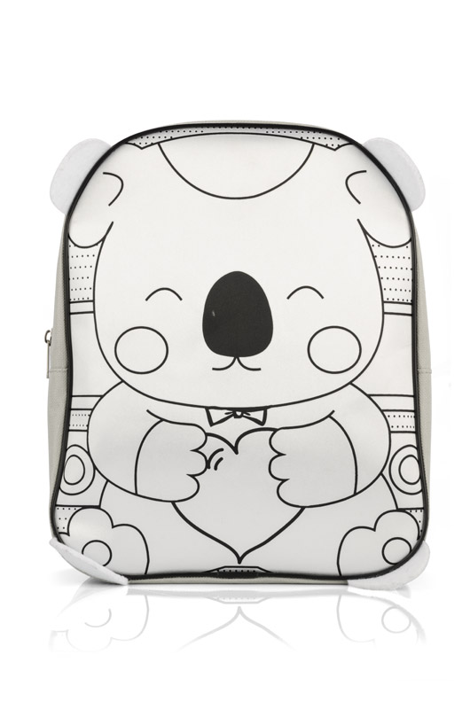 Nieduży plecak z nadrukiem sympatycznego misia do samodzielnego pokolorowania. W zestawie pisaki w 6 kolorach. Plecak TEDDY pomieści niezbędne przedmioty potrzebne małym turystom na pierwsze wyprawy.
