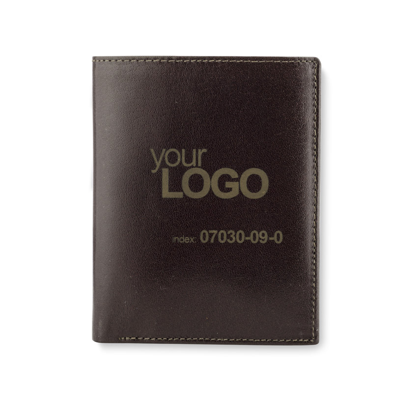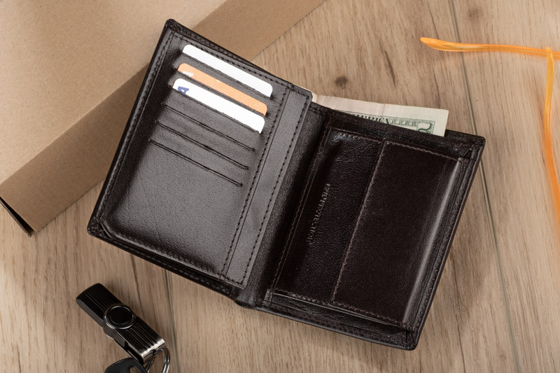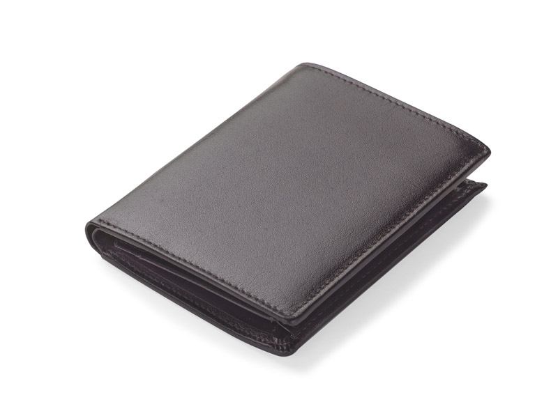 Portfel wyposażony w miejsce na bilon, 2 kieszenie na banknoty, 6 miejsc na karty kredytowe, 5 kieszeni na dokumenty. Dodatkowo został wzbogacony o folię zabezpieczającą przed kradzieżą danych z kart kredytowych, blokując sygnał RFID. Portfel pakowany w drewniane pudełko. Na portfelach wykonujemy tłoczenie lub grawer. Istnieje także możliwość wykonania graweru na pudełku.