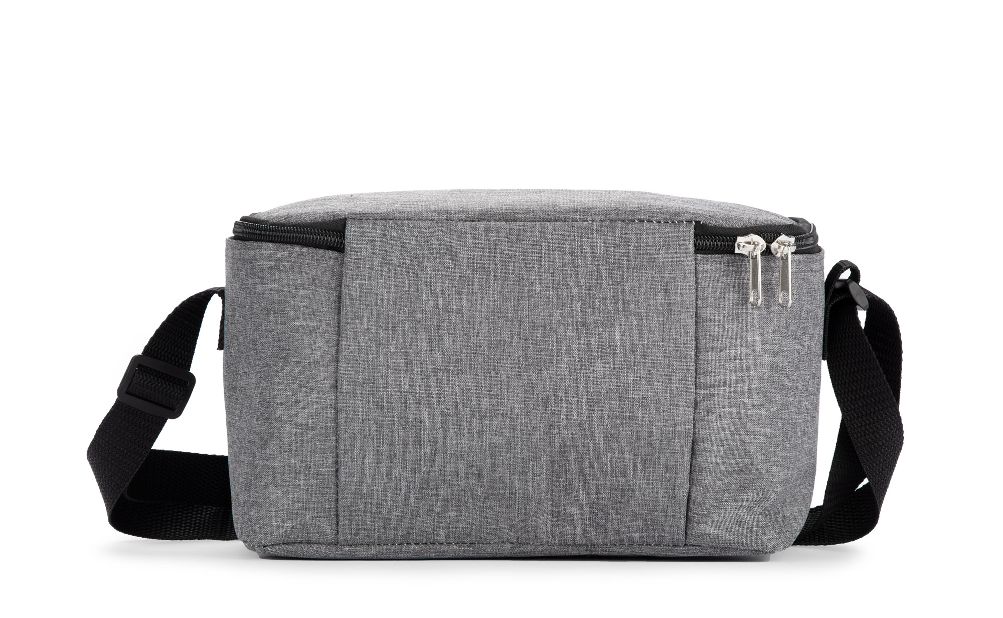 Torba termiczna CHILLER z izolacją aluminiową. Wykonana z recyklingowanego materiału rPET. Zamykana na zamek błyskawiczny. Posiada regulowany pasek ułatwiający przenoszenie torby oraz małą kieszonkę na drobiazgi.