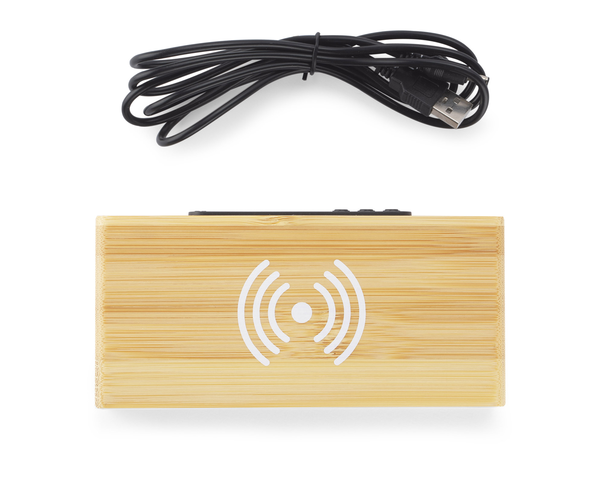 Zegar INDUCTO to połączenie cyfrowego zegara w ekologicznej bambusowej obudowie z ładowarką indukcyjną o mocy 5W. Jest to gadżet, który świetnie wygląda na biurku, a dodatkowo jest niezwykle praktyczny. W zestawie kabel do zasilania. Zegar wyposażony w funkcję kalendarza i alarmu. Dane techniczne: zasilanie – wejście DC 5V/2A, AC100-240V 50/60Hz, wyjście ładowarki bezprzewodowej: 5V/1A (maks.)