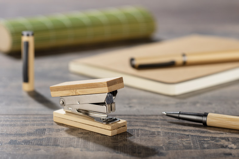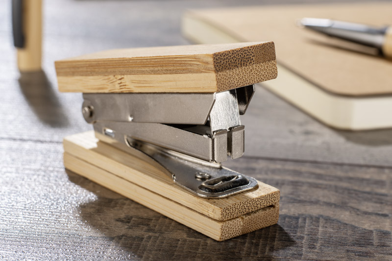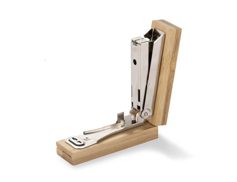Zszywacz STAPI to poręczny gadżet, który jest niezbędny w każdym biurze. Wyróżnia go kompaktowy rozmiar oraz naturalny design, dzięki wykonaniu z ekologicznego bambusa. Zszywacz wymaga zszywek o niestandardowym rozmiarze, które nie są dołączone do zestawu.